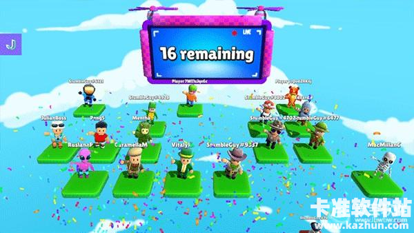 6、每一个小关卡结束后,所有玩家出现在一个个的小格子中,之后关卡挑战失败的玩家会向下掉落结束游戏,只有淘汰所有玩家才能获得游戏的胜利。