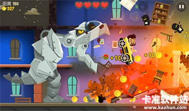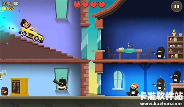 虽说跟老爸曾是小偷极其相似,胡子大叔还是具备自己特色的,刚开始乘着座驾帅气登场时的玩法,其实就是大家熟悉的跑酷类游戏,不断前进的过程中用自己的小车去撞击外星人或高楼大厦。接着就是跳下爱车,穿梭在大楼的各个楼层之间,躲避敌人攻击的同时,想方设法攻击对方。