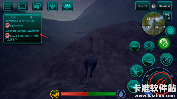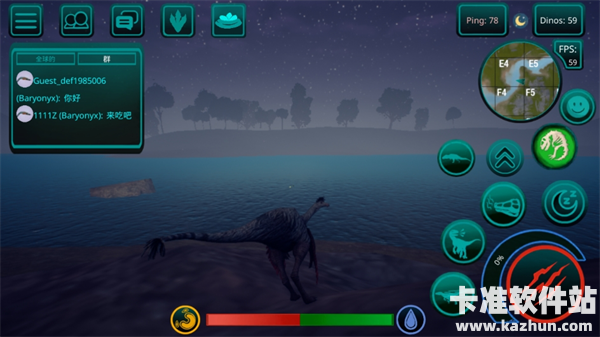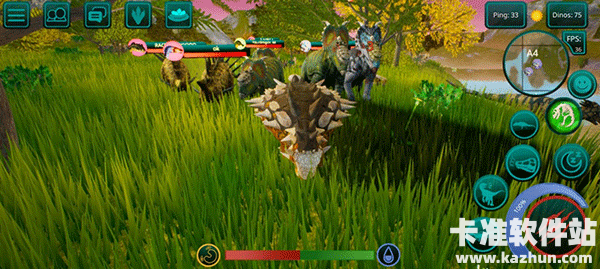3、食物提取,如果恐龙是掠食者,那么你需要杀死其他玩家的恐龙才能得到自己的肉,如果你是草食动物,那么食物就更容易了,你需要特殊的蕨类植物,你可以得到足够的他们!地图上任意湖泊、水库都可以饮用。