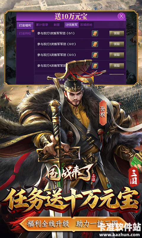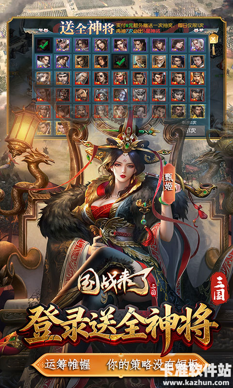 国战来了是一款三国题材的战争策略类手机游戏,玩家将扮演一位将领,加入魏、蜀、吴与群雄四大国家的战斗,在战斗中排兵布阵,指挥自己麾下的武将与士兵进攻敌方城池,灭国的机制设定将让国家之间的战斗更为惨烈,也带给玩家更令人震撼的国战战斗体验。除此之外,国战来了还包含了海量的福利好礼可供玩家领取,帮助玩家快速上手游戏并成长为独当一面的将才,喜欢国战类游戏的玩家不容错过,赶紧下载国战来了吧!