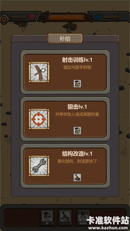2、开局开局先选火枪手,然后狂点住剑阁,前期火枪手足以应对所有敌人,之后疯狂提升枪手的科技,在这中间能把剩下两个兵种也给打开是最好的,道士和棍子幸存者只需要各升级一个重要的技能就可以了,分别是撒豆成兵和我摊牌了。