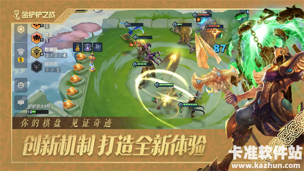 金铲铲之战官方正版将云顶之弈的游戏内容进行了完美移植,且针对手机端的操作进行了调整适配,让手游玩家也可流畅运行游戏,招募众多不同羁绊的棋子构筑阵容,享受与其他选手征战云顶战场争夺胜利的刺激战斗体验。