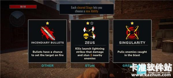能力选择:通关后根据当前关卡类型选择强化能力: