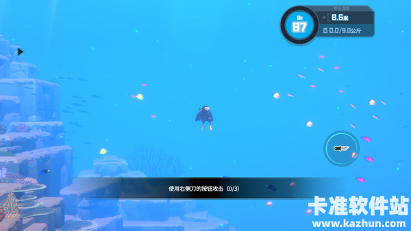 4、首先玩家需潜入蓝洞,可使用右侧刀的按钮攻击;