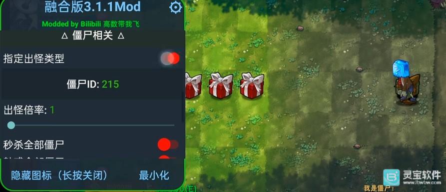 3、打开mod,开启开发者模式、任意种植、更好的时停、指定出怪类型ID改成215
