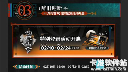 玩家在活动期间进行登录即可在活动页面中领取登录奖励:[载月明归寻访凭证]*1