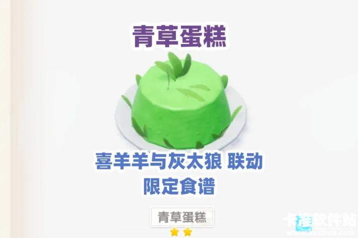 3.成品青草蛋糕外观为绿色糕体,顶部带有羊村风格的装饰叶片,可赠予NPC或用于完成后续联动图鉴收集。