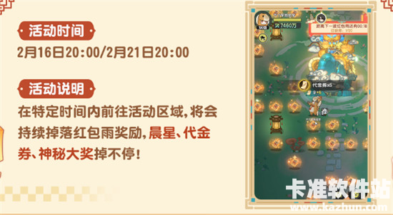 2、福利内容:指定时间前往活动区域,即可参与红包雨活动,掉落晨星、代金券、神秘大奖等奖励。