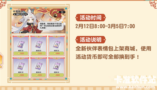 福利内容:全新伙伴表情包上架千霄商店,使用活动货币即可全部兑换。