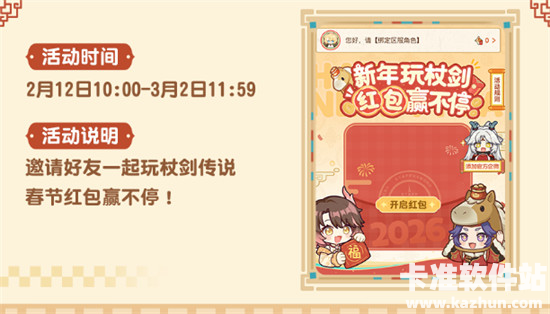 福利内容:邀请好友一起游玩《杖剑传说》,即可参与活动赢取春节现金红包。