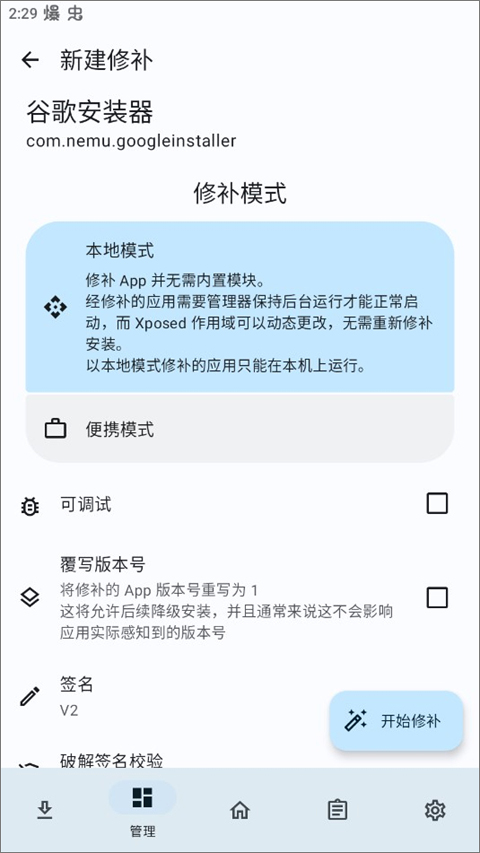1、打开LSPatch,底部导航栏第二个管理,右下角+号图标