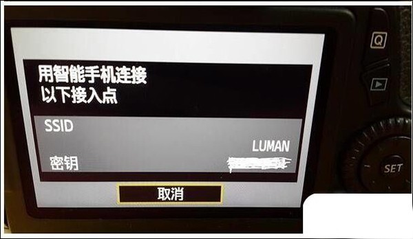 3、现在来到了如下界面,有六个图标,选择第一行第二个(手机图形那个),即连接至智能手机。“连接方法”选择“相机接入点模式”,点击确定,“网络设置”选择“轻松连接”,点击确定。这时出现了下面SSID和密钥,这就是相机发射给手机的Wifi名称和密码。当然,这个Wifi只能传照片用,无法上网。