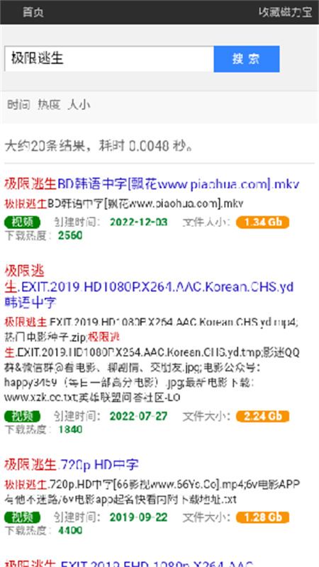 磁力宝app之中会给你嗲来超级便利以及完整的磁力搜索功能,最大程度的满足你的下载需求,只有你想不到的资源,没有你找不到的资源,非常的完全哦。