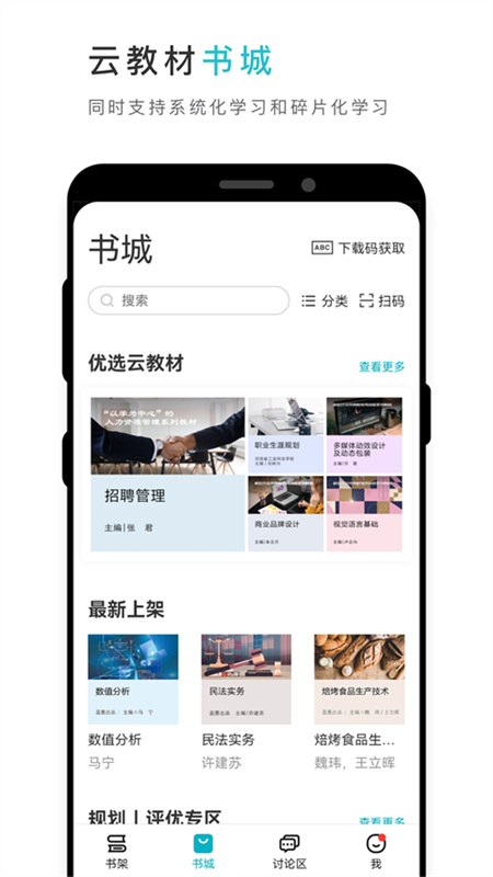 配合蓝墨云班课实现教学互动,可查阅授课教师标注的学习指导和学习重点,与同学分享笔记,获得课程通知、下载课程资料