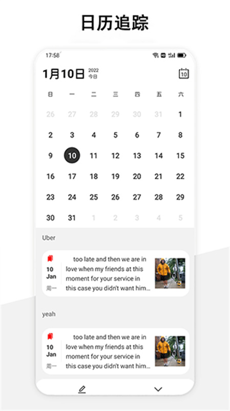 在你记录你的日记笔记的同时你可以插入记录你的精美图片,并且点击图片可编辑图片按比例裁切!