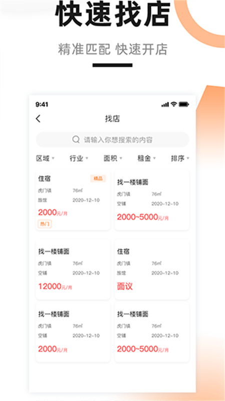 3、快速找店:拥有丰富、优质的店铺,各类商铺,各种价格,拥有出售店铺,你可以直接拥有属于自己的商业基地、也有转让店铺,收益不好再选位置。