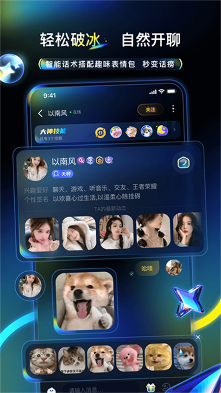 汇聚超多电竞高玩,覆盖多款热门游戏,在这里自由的组队开麦,各种顺畅的交流方式,智能算法匹配队友,还有实时更新的电竞赛事,趣味互动玩法多样,感受不一样的游戏氛围。