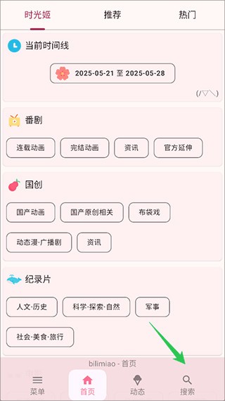 1、打开bilimiao软件,点击底部的搜索按钮