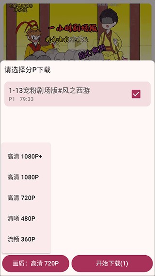5、选择画质,然后点击右下角的开始下载