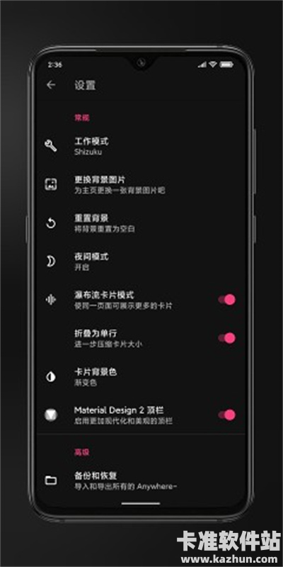 3、云备份:Anywhere-支持使用WebDAV协议备份数据。前往设置–备份和恢复页面来设置云备份账号。以坚果云为例,WebDAV域名一栏填写。https : /ldav.jianguoyun . com/davl , WebDAV用户名一栏填写你的用户名,WebDAV密码一栏则根据服务提供商的要求填写。例如坚果云需要在设置中申请应用密码并填写。当一切数据都填写正确后,点击立即备份即可立即触发备份。您也可以开启自动备份,应用将在卡片有任何改动的情况下,在应用返回退出或者在强行退出应用后下次一重启时自动备份数据。