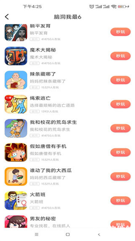 2、涵盖了各种类型的手机游戏,可以帮你打发无聊时光,想玩点开就能玩.