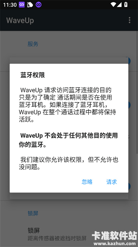 安装并开启服务: 本站免费下载并安装 WaveUp 后,首次打开应用需要根据提示开启相应的权限。