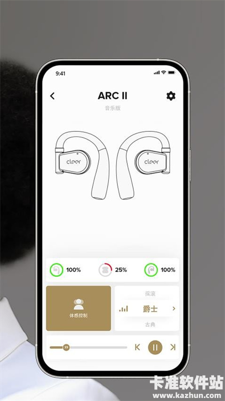 通过这个应用软件对Cleer耳机能够进行音乐的全面切换与音效相关调整。