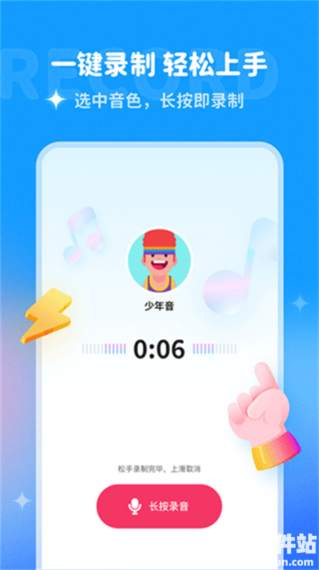 1、可以一键开启录音,直接变声,软件没有广告,界面非常清爽。