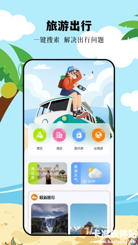 1、打开应用就可一键实现旅游探索,轻松出行旅行。