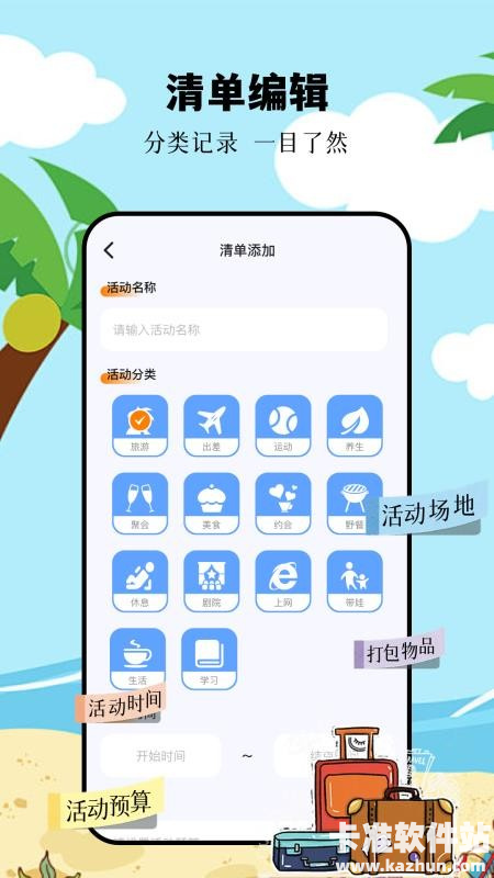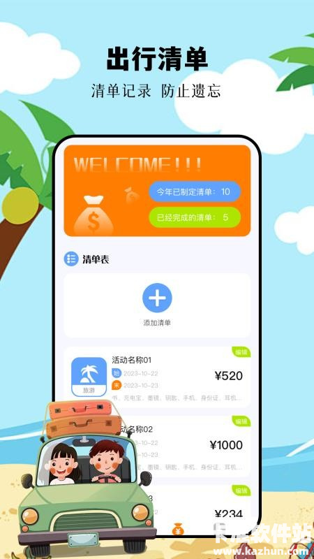 3、可以对相关的清单来进行实时编辑,用户可以分类记录相关的旅行清单,随时添加清单。