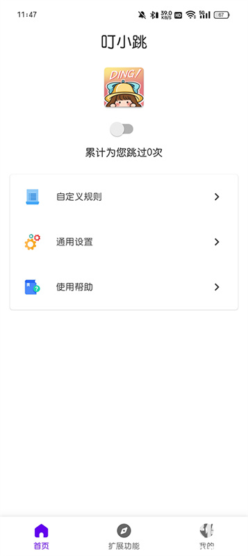3、叮小跳提供简单易用的一键跳过功能。