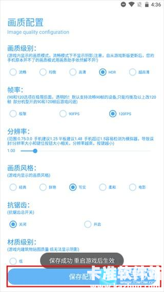 3、选择好自己想要的配置,点击“保存配置”,重新打开游戏即可