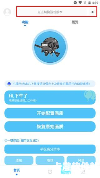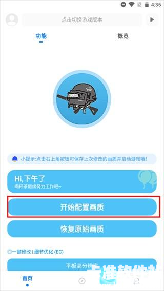 玩家在打开吃鸡游戏之后再打开本款软件,然后你可以根据自己的实际情况来调整游戏的画质,还有音质修改,各种功能应有尽有,占用内存非常的小,几乎没有什么影响,助你吃鸡一臂之力!