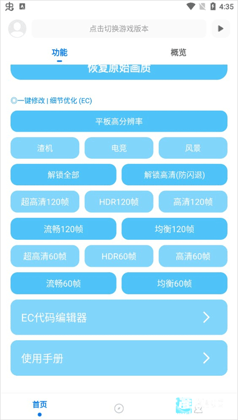 4、每次玩游戏轻轻点一下,自动写入你调好的画质代码并启动游戏,实现锁定画质!