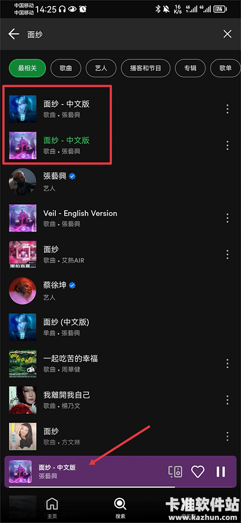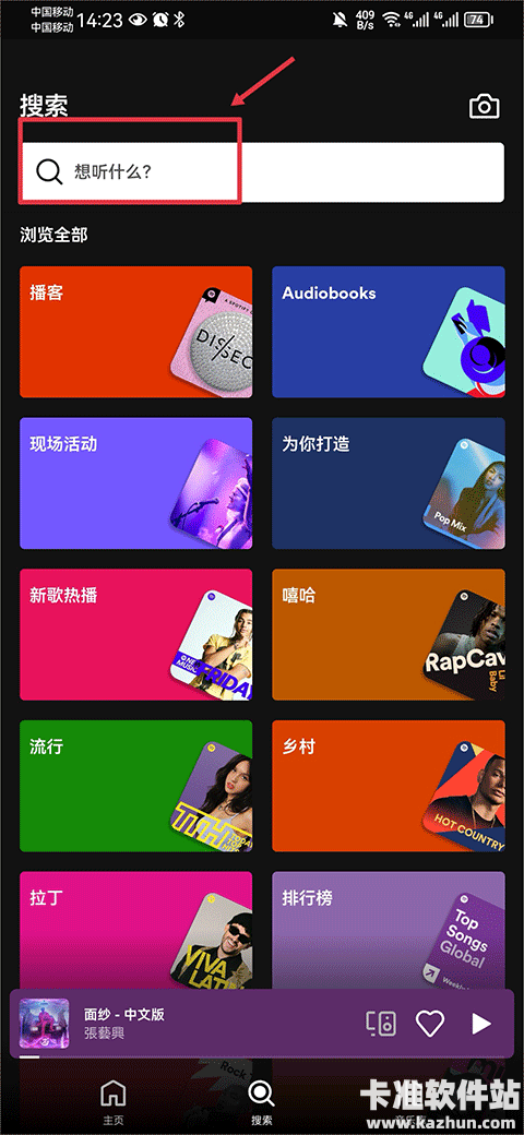 1、打开app后,在搜索页面中输入歌曲名字或者艺人名字