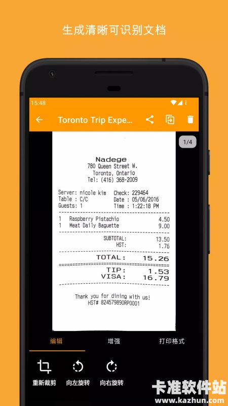 1、可检测页面边框、裁剪并更正角度:无需拍得很正,Genius Scan会消除不必要的背景