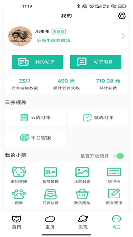 帮助爱心小院养流浪动物;云养后,你每周能看到牠的视频动态,并具有优先领养权。