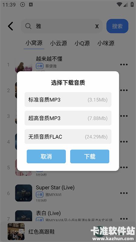 3、点击下载按钮后选择音质后进行下载