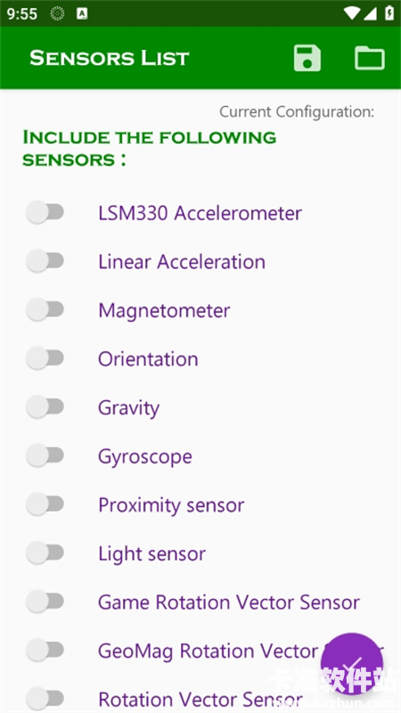 3、可勾选需要启用的传感器(如Qualcomm 3轴陀螺仪、加速度计、磁场传感器等),