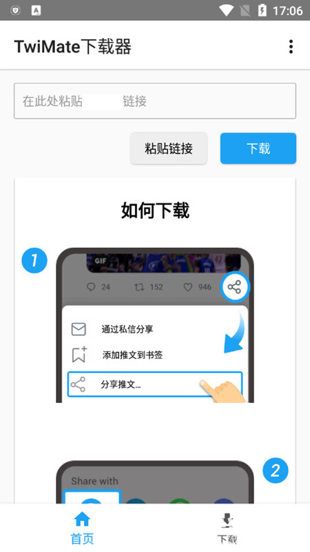 2、批量下载:用户可以通过TwiMate批量下载APP上的媒体。只需将多个链接输入软件,然后一键下载所有媒体内容。