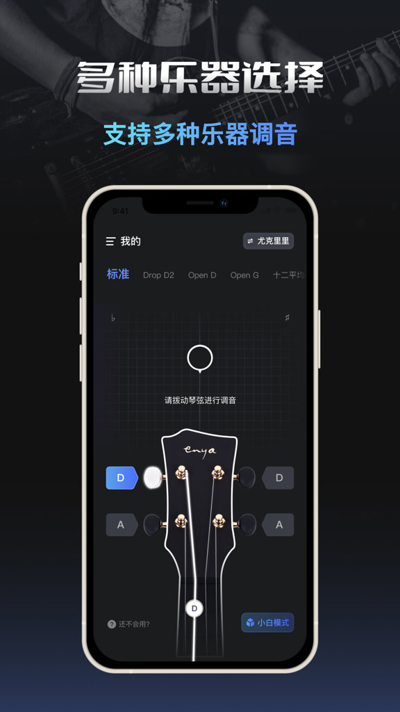 这款智能调音器堪称乐器调音的得力助手,完美适配吉他、尤克里里、贝斯、提琴、古筝等多种乐器。其人性化的设计提供新手自动模式和专业的十二平均律模式,无需繁琐的手动校准,即可智能捕捉音高并实现精准调音,即便是初学者也能轻松掌握,让乐器调音一步到位。 调音器内置先进的AI算法,能够实时分析演奏状态,智能提供弦距调整、音色优化等个性化建议,自动模式下的调音精度令人惊叹。除了基础音高校准功能外,还支持音效参数自定义设置,帮助演奏者优化乐器音质。无论是日常练习还是专业演出,都能快速获得稳定的音准和令人满意的音色表现。