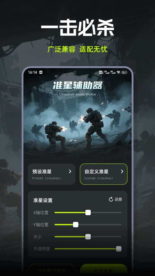 准星+是FPS玩家不可或缺的手机游戏辅助神器,它能显著提升瞄准精度,助您在枪林弹雨中战无不胜。这款工具提供丰富多样的准星样式选择,从经典的十字准星、环形准星到炫酷的激光准心应有尽有。更贴心的是,若预设准星未能满足您的个性化需求,您还可以随心所欲地进行自定义调整。