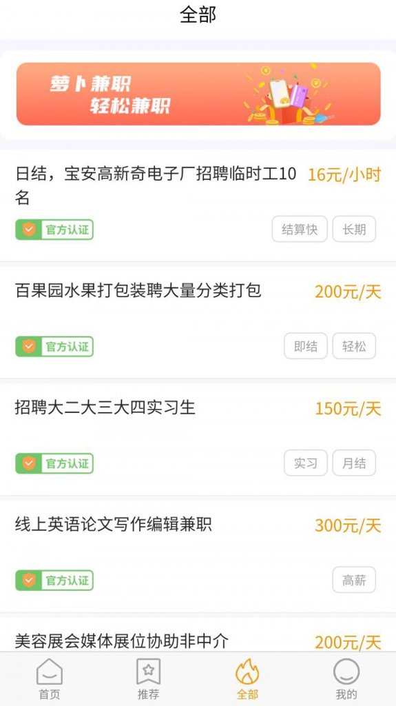 萝卜兼职是一款专业的兼职招聘平台,致力于为用户和企业搭建高效、便捷的兼职对接桥梁。平台依托先进的人工智能技术,通过精准匹配算法,为用户推荐最适合的兼职岗位,同时为企业筛选优质人才。萝卜兼职涵盖餐饮、零售、教育、IT等多个行业,提供丰富的兼职选择。用户可以通过手机轻松浏览岗位信息、一键投递简历,并与企业实时沟通。平台还提供兼职保障服务,确保薪资透明、工作安全。萝卜兼职以用户需求为核心,不断优化服务体验,帮助更多人实现灵活就业,为企业解决用工难题。