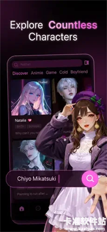 1、拥有丰富角色库,用户可选择不同角色开启聊天,AI能迅速理解并回应各种主题和情感,实现沉浸式聊天互动。
