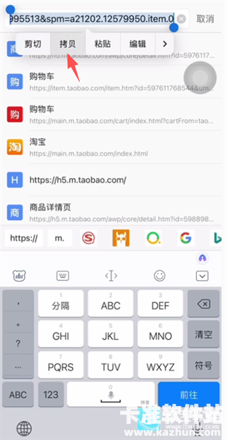 2、随后长按搜索框,复制拷贝该地址。