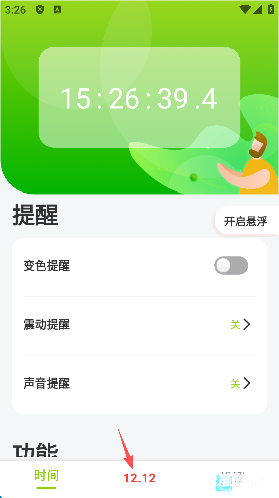 1、在app时间界面内点击右边的开启悬浮