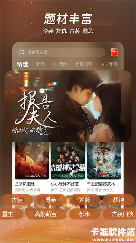 2、也可以在剧场中心通过分类来获取自己喜欢的短剧类型进行观看